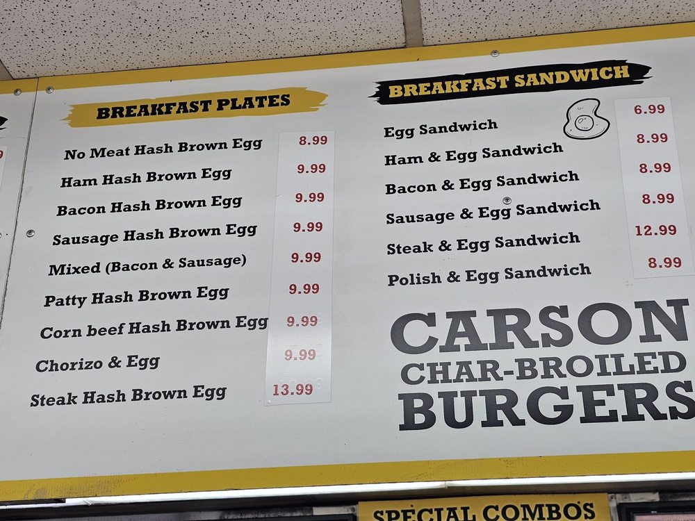 Welcome to Carson Burgers, where you can indulge in a variety of signature burgers and hearty meals in a casual yet classy atmosphere. Located at 21680 S Wilmington Ave Carson, CA 90810, this burger joint offers takeout, delivery, and even catering services. With many vegetarian options available, it caters to a diverse range of tastes. The reviews from customers highlight the quick service, decent prices, and delicious menu items like the teriyaki dinner and avocado cheeseburger. Whether you're in the mood for a classic char burger, a breakfast burrito, or a satisfying combo meal, Carson Burgers has something for everyone. Don't miss out on the opportunity to experience their delicious offerings and friendly service.